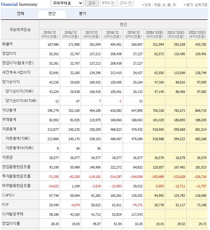<SK하이닉스 주가 재무재표/발췌, 네이버금융>